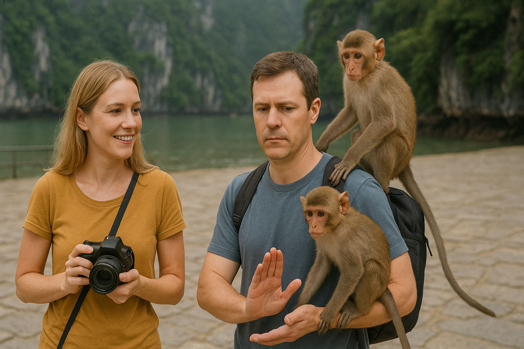 Glänsande smycken kan dra till sig uppmärksamhet från apor, och en del apor har t.o.m. lärt sig tricket att stjäla mobiltelefoner och andra värdefulla föremål och endast släppa dem om offret kastar mat till dem. Man ska därför aldrig mata apor och alltid ha mycket god koll på sina saker. Djur i vissa områden har lärt sig att påsar med mat, ofta placerade i ryggsäckar, är en matkälla.