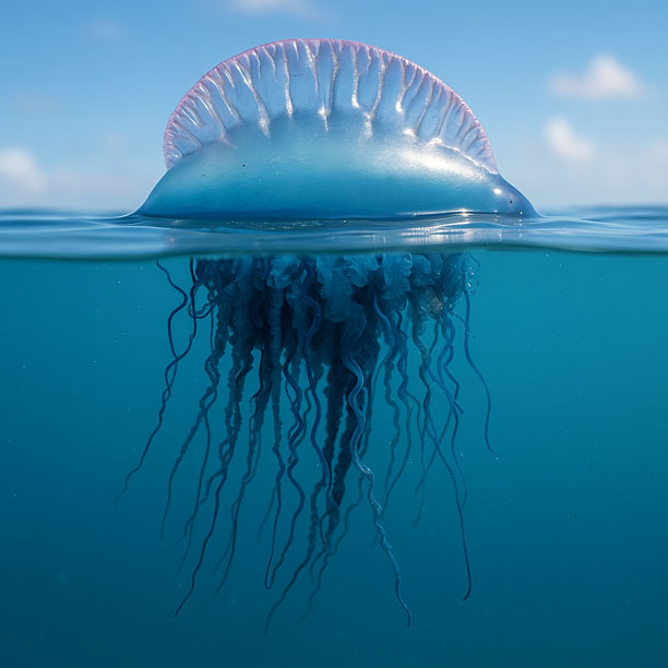 Blåsmaneten, som förekommer i Atlanten och Indiska Oceanen, är inte en manet utan en ansamling av kolonier av en stor mängd polyper. Dessa formas till en blåsa som kan fungera som segel och tentakler som kan bli upp till 50 meter långa. Polyperna i dessa kan avge ett nervgift som kan ge upphov till lokal smärta och svullnad. Vid svår förgiftning kan man få hjärtpåverkan och allmän sjukdomskänsla.